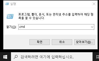 파이썬 실행 (Win + R) 입력 cmd 입력을 통해 도스창을 열어준다